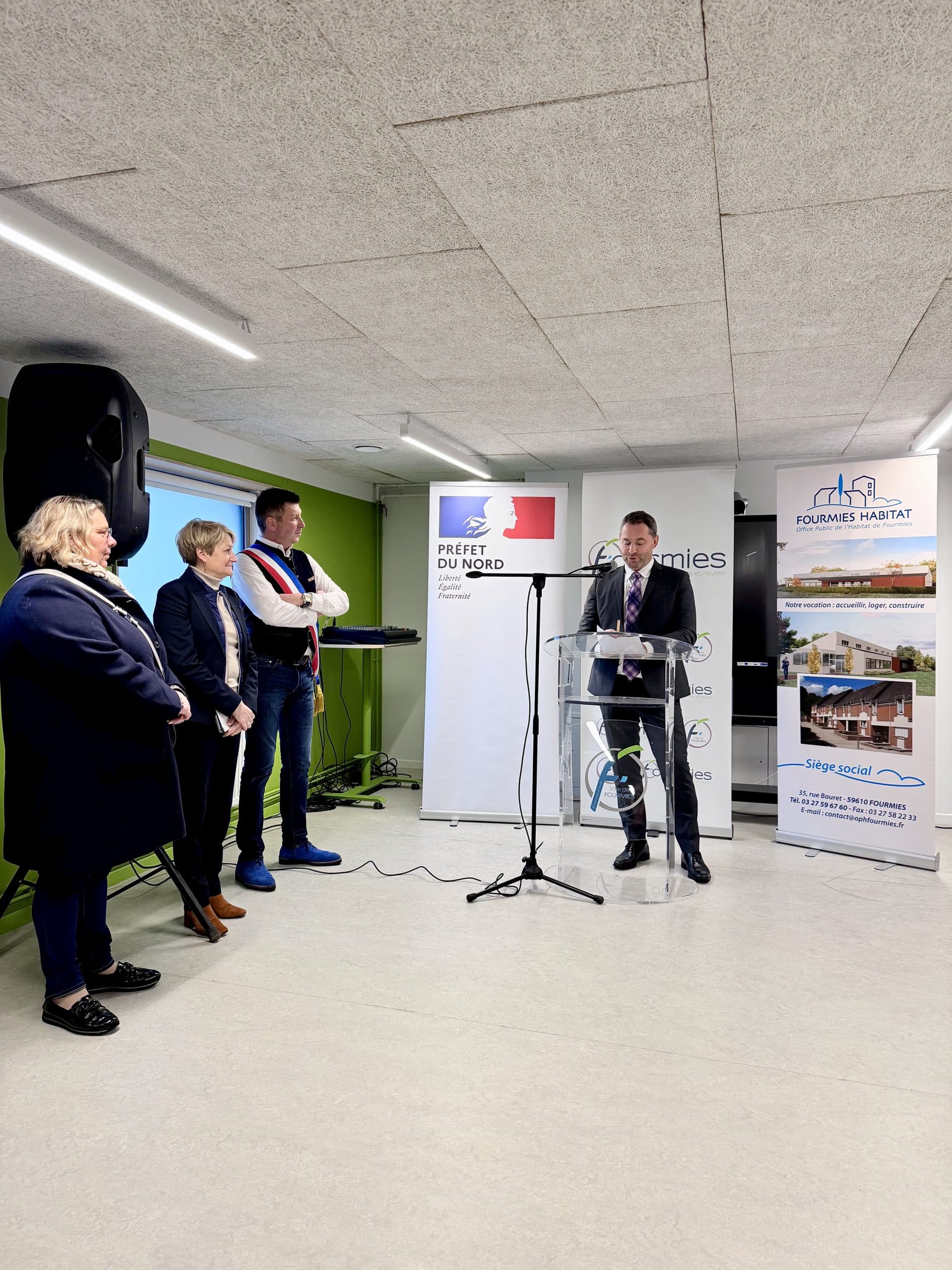Par Madame la Sous Préfète Hélène Demolombe-Tobie, MICKAEL HIRAUX, Maire de Fourmies et Président de Fourmies Habitat et Bertrand DUPRAT, notre Directeur Général.